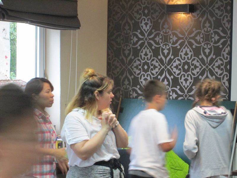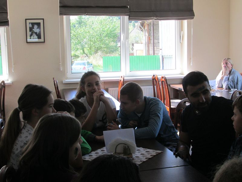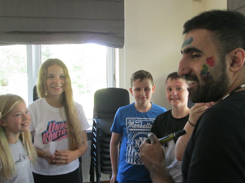 W trakcie warsztatów rysunkowych Ł. Zabdyr przedstawił zawód ilustratora i pokazał ćwiczenia graficzne zachęcające do rozwijania własnych zdolności. Grafik podkreślał, że cechą rysownika jest cierpliwość i solidność - Predyspozycje do rysowania mają wszyscy, reszta to praca. Pokazywał jak rysować zwierzęta i inne zabawne postaci. Dzieci poznały jak z literek alfabetu stworzyć aniołka, biedronkę, żyrafę czy baranka. Dowiedziały się jak przy użyciu prostych kropek i kresek wyrażać emocje i tworzyć zabawne buźki. Przy wykorzystaniu liter, uczestnicy w kilka minut wykonali rysunek samochodu, kota czy zamku. Wszyscy świetnie się bawili słuchając barwnych opowieści o rysowniczych przygodach pana Łukasza.