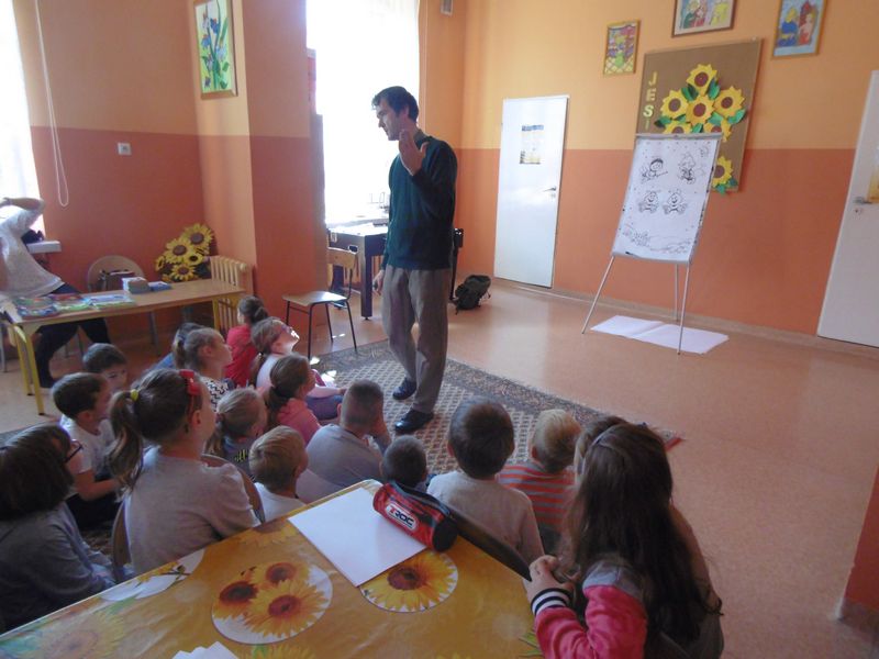 Dnia 25.09.2017 roku uczniowie klas I – III uczestniczyli w spotkaniu z Łukaszem Zabdyrem - krakowskim grafikiem, ilustratorem i twórcą komiksów. Zadebiutował jako twórca komiksów z serii humorystycznych stripów pt. "Jacuś" do katolickiego tygodnika dla dzieci "Dominik". W latach 1999-2007 powstało ponad 400 historyjek. W 2003 r. wydał album komiksowy "Hirek&As. Gdy w Egipcie rządził Faraon" - komiks w odcinkach publikowany był w "Płomyczku". Ponadto jest ilustratorem książek dla dzieci autorstwa pani Ewy Stadmuller i ks. J. Twardowskiego.